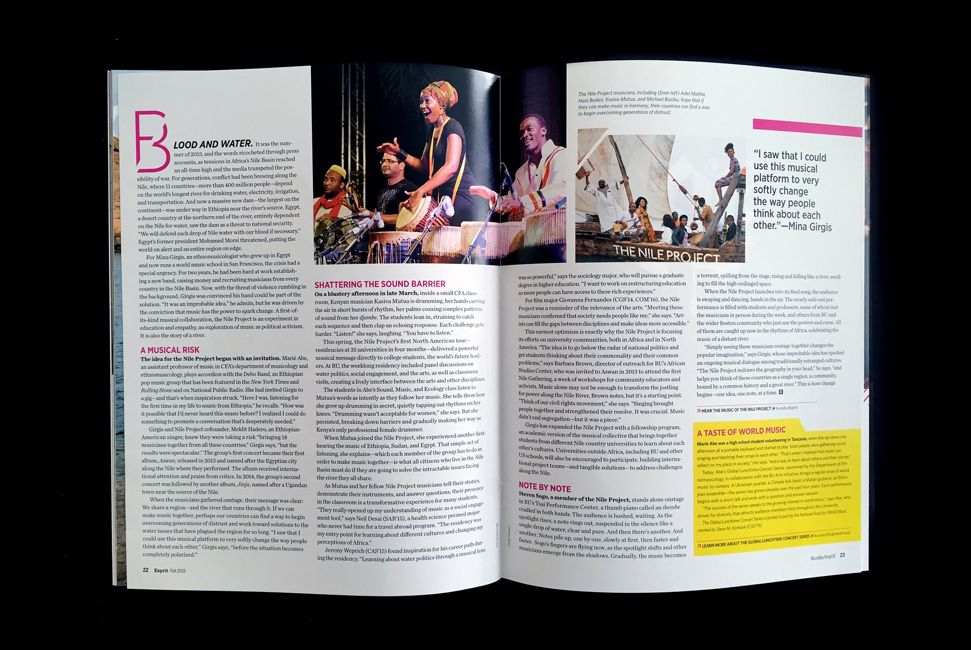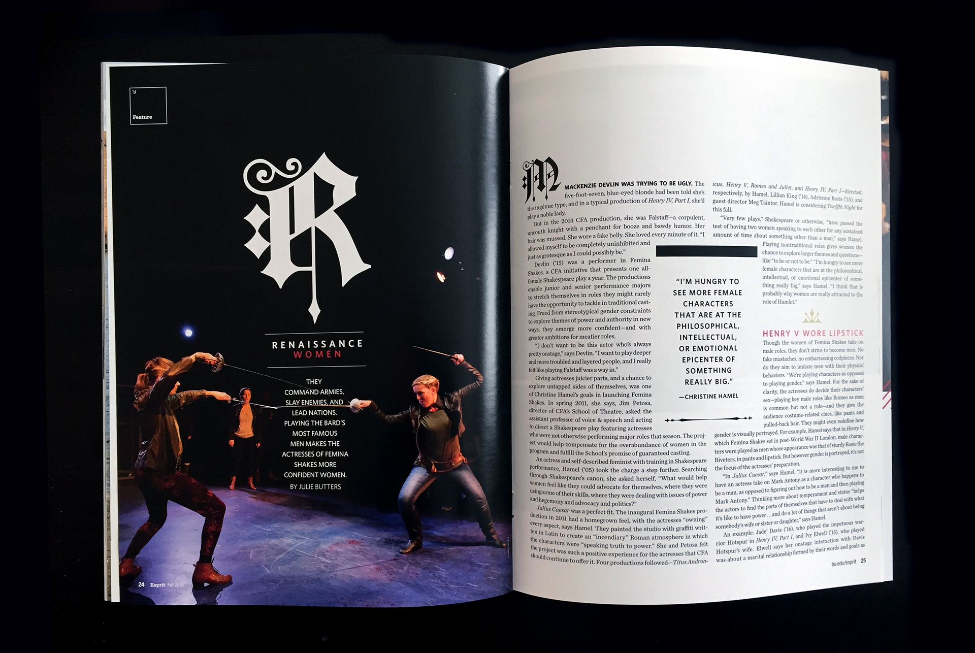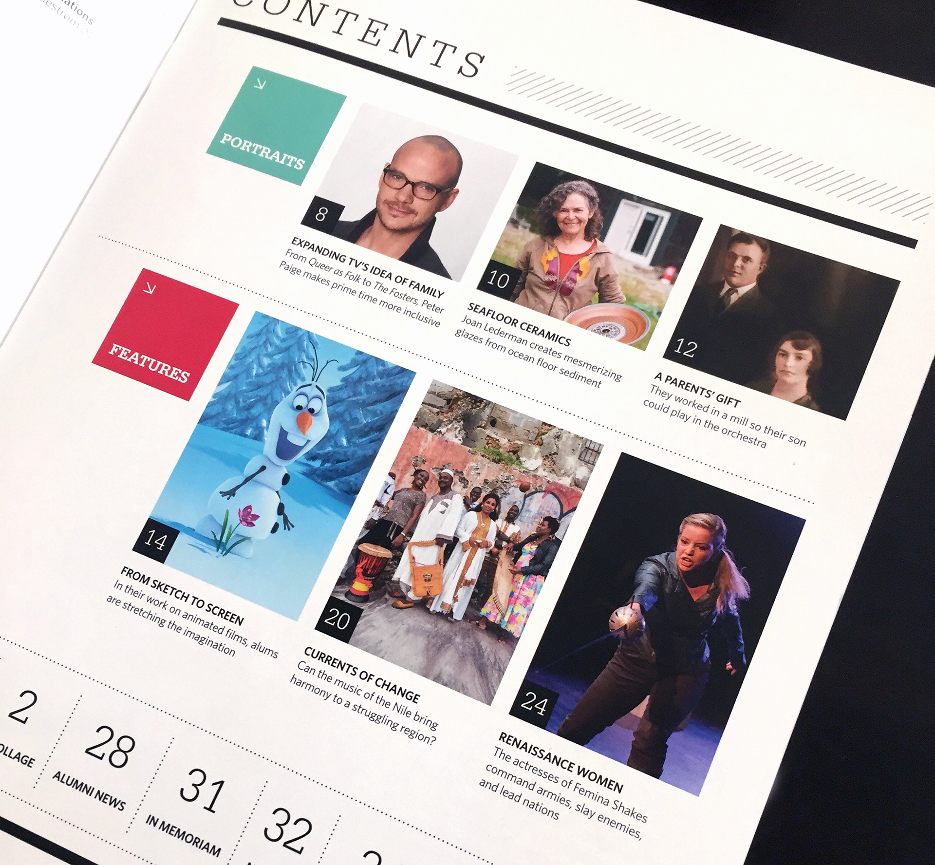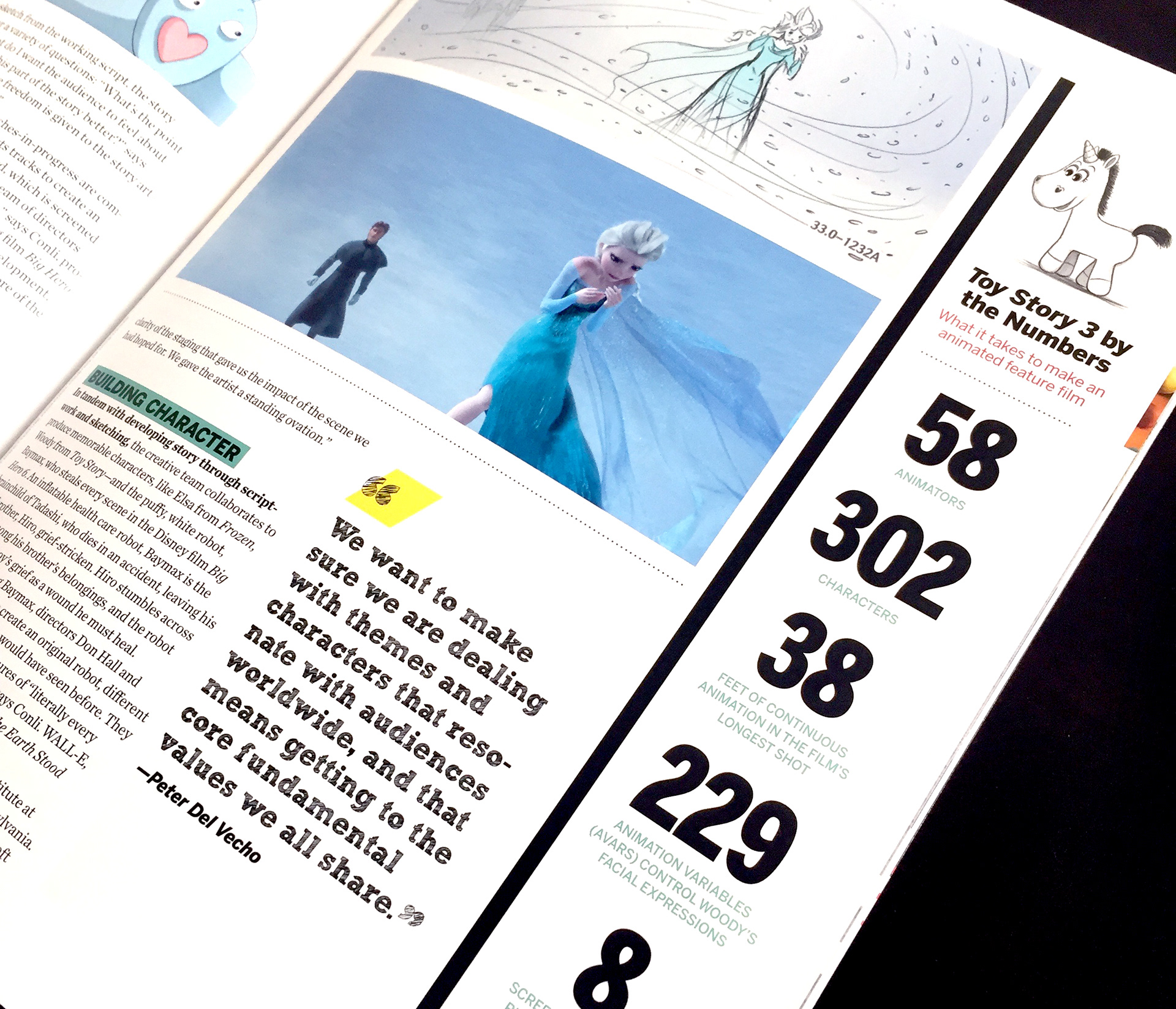 Cover received a merit award in the world's best editorial design competition, SPD 51. Esprit is the alumni magazine for the Boston University College of Fine Arts. The feature story highlights alumns in a behind the scenes look at the world of animation.
